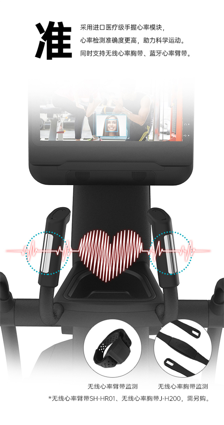 舒华立式商用健身车SH-B9100U(V10)触屏版拥有超大显示和操作屏幕, 可以任意设置阻力、时间和距离等参数,还可以即时显示心跳和转速等数据,同时,SH-B9100U提供多项科学运动处方,更轻松掌握运动节奏。