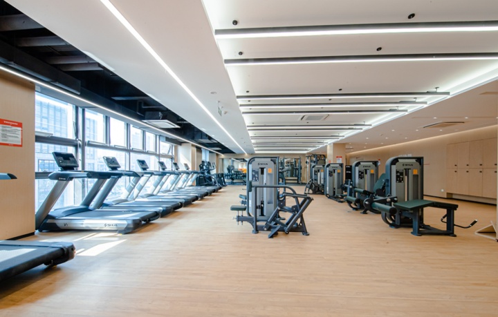 二、健身房的设计风格还应该体现企业的特色文化和气质,即健身房的设计,要干净整洁,空气清新,灯光讲究、音乐优美,更衣室、淋浴间的设计也不能马虎,比如色调可以和公司的Logo颜色相统一;